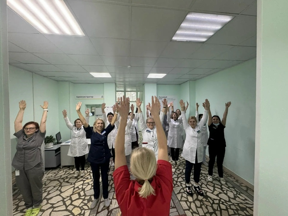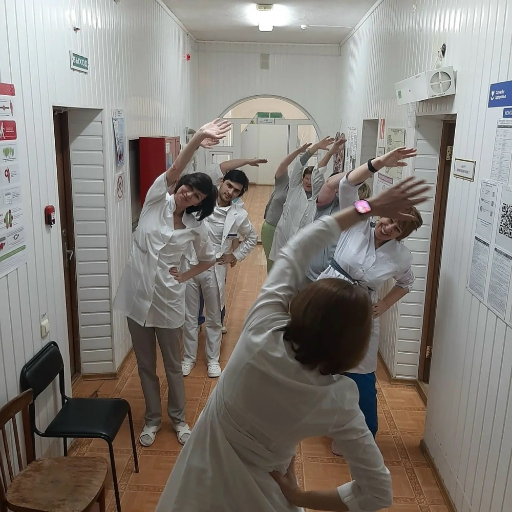 Небольшой перерыв на зарядку — это отличный способ поднять настроение, снизить напряжение и поддержать уровень энергии на протяжении всего дня. Мы заботимся о здоровье не только наших пациентов, но и всей команды.