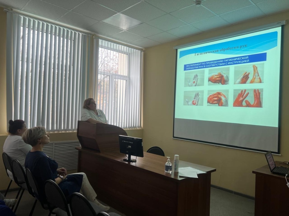 Проведено еженедельное обучение медицинского персонала, разработанным алгоритмом (СОП). Медицинская сестра отдела диспансерного наблюдения и лечения Лилия Лутфуллина провела обучение медицинского персонала на тему: «Гигиеническая обработка рук, алгоритм надевания и снятия медицинских перчаток, а также алгоритм надевания средств индивидуальной защиты». Данное мероприятие было организовано в рамках внутреннего контроля качества и безопасности медицинской деятельности.